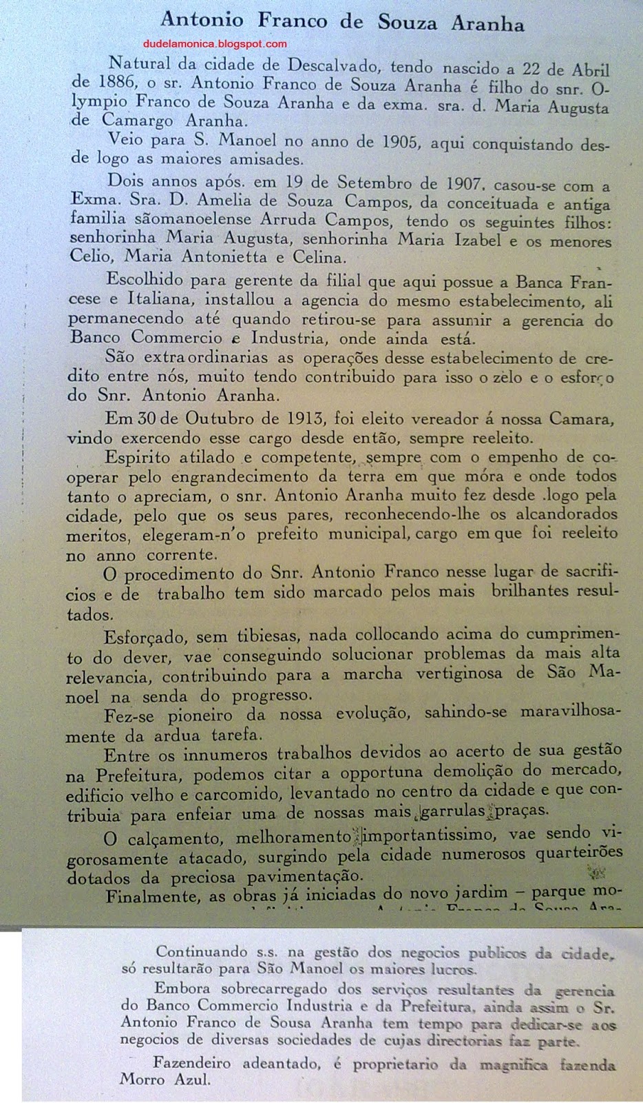 BIOGRAFIA DE ANTONIO FRANCO DE SOUSA ARANHA - 1928